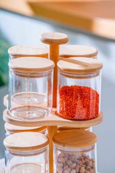 Malıbu 8 Parça Döner Standlı Cam Baharatlık Seti